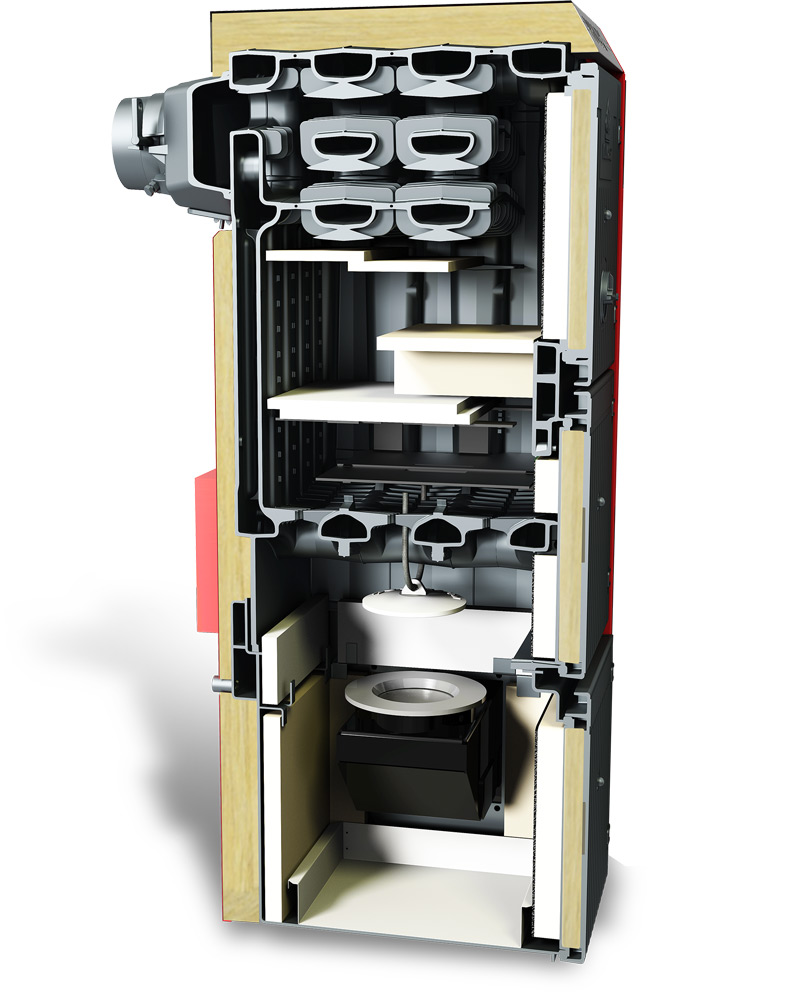 ceramiczne wkłady wewnątrz wymiennika ciepła obniżają emisję pyłów dodatkowo podnosząc sprawność kotła,